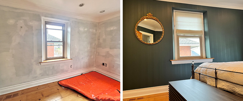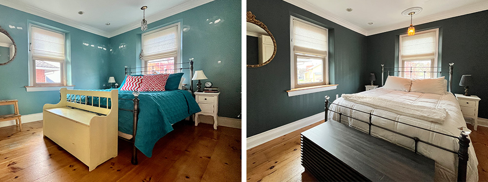 Now we have a hotel-like sanctuary to retreat at the end of each day, instead of a looming project with decor that didn’t quite go together. It’s a calm primary bedroom with a perfect paint finish.
