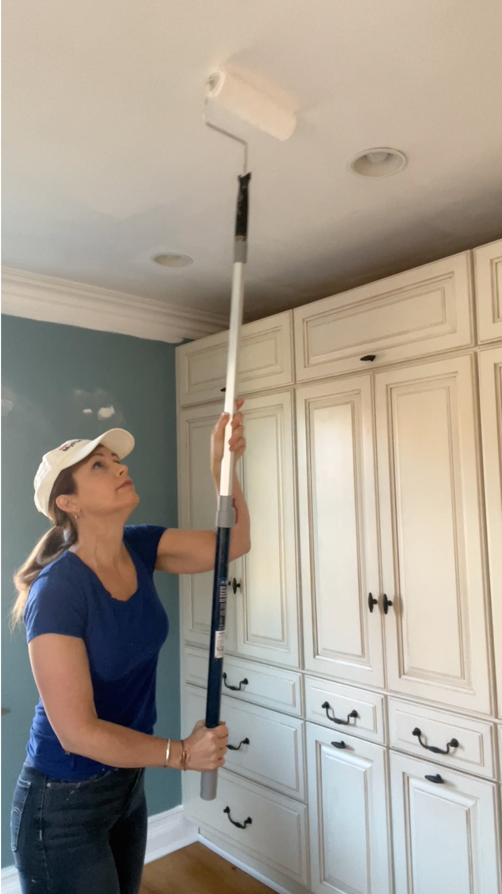 The next step before priming the walls is painting the ceiling. Since this ceiling was primed before and is painted flat ceiling white, it didn’t need another coat of primer, just a fresh coat of white paint. I used Magnolia Home by Joanna Gaines® by KILZ Interior Paint in True White, matte finish.