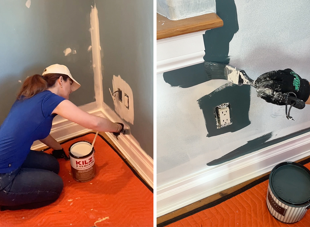 While you might be tempted to skip the primer or choose a paint-and-primer in one, we don’t. We always use a high quality primer because it sets the foundation for a good quality paint job and a professional finish. Even though the KILZ brand partnered with us on this makeover, KILZ has been our go-to primer for more than a decade because it delivers long-lasting results for our home and our clients’ homes.