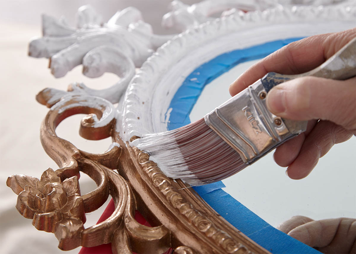 Step 4: Apply KILZ Kitchen & Bath primer with a small paint brush. Allow primer to dry for 1 hour.