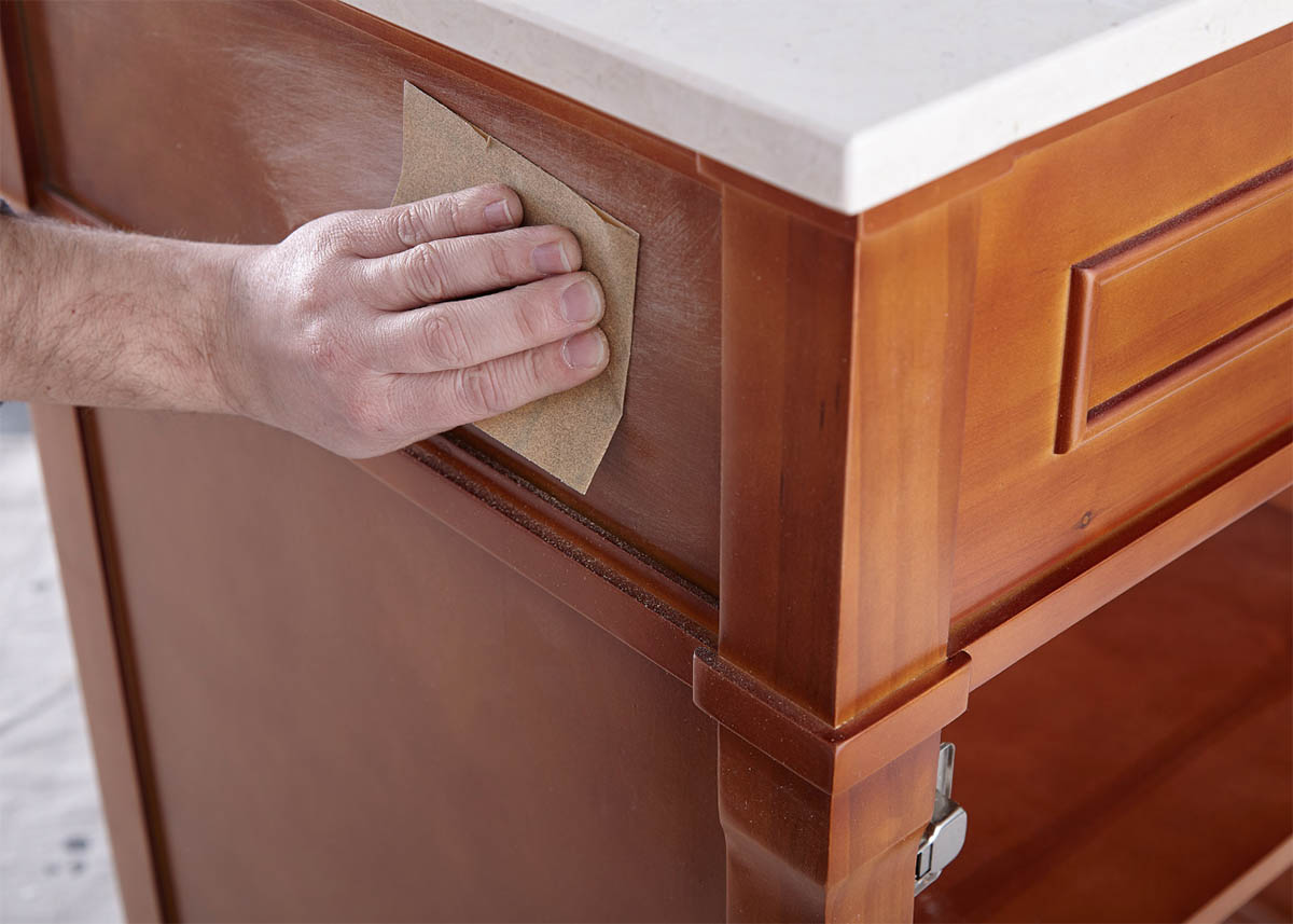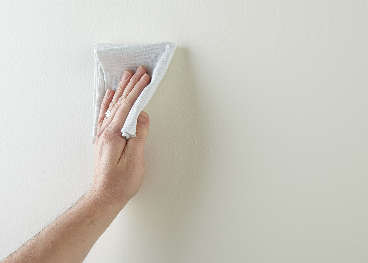 Step 2: After sanding, wipe down the surface with a damp cloth to remove any dust or residue and allow the surface to dry.
