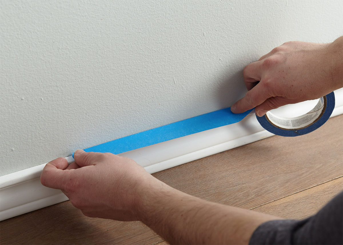 Step 2: Once dry, tape around the baseboards, trim and moldings.