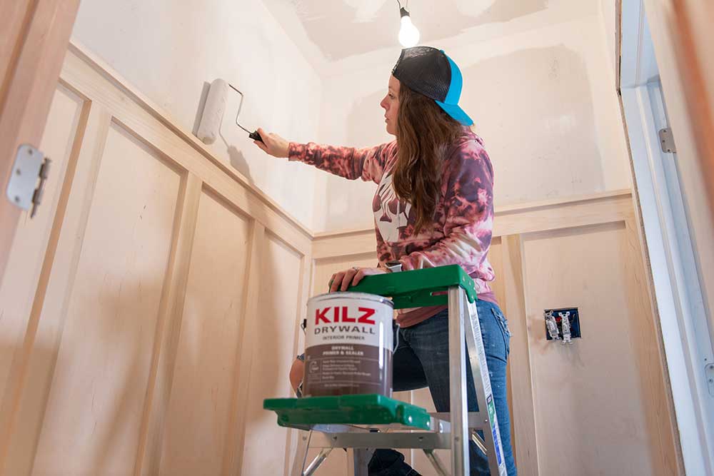 A: Yep, something that seals another material like drywall or wood. KILZ brand primers come in a variety of types to serve specific substrates. For me, I needed a primer specific to coating new drywall. Drywall has zero protection against moisture and, in fact, is engineered in such a way that can actually make it pretty susceptible to attracting water. Priming with KILZ Drywall primer is going to protect your drywall from moisture. If we’re talking about wood, using KILZ 3 Premium can seal in tannins and resins that are naturally found in wood to lock them in so that they don’t bleed through your topcoat.