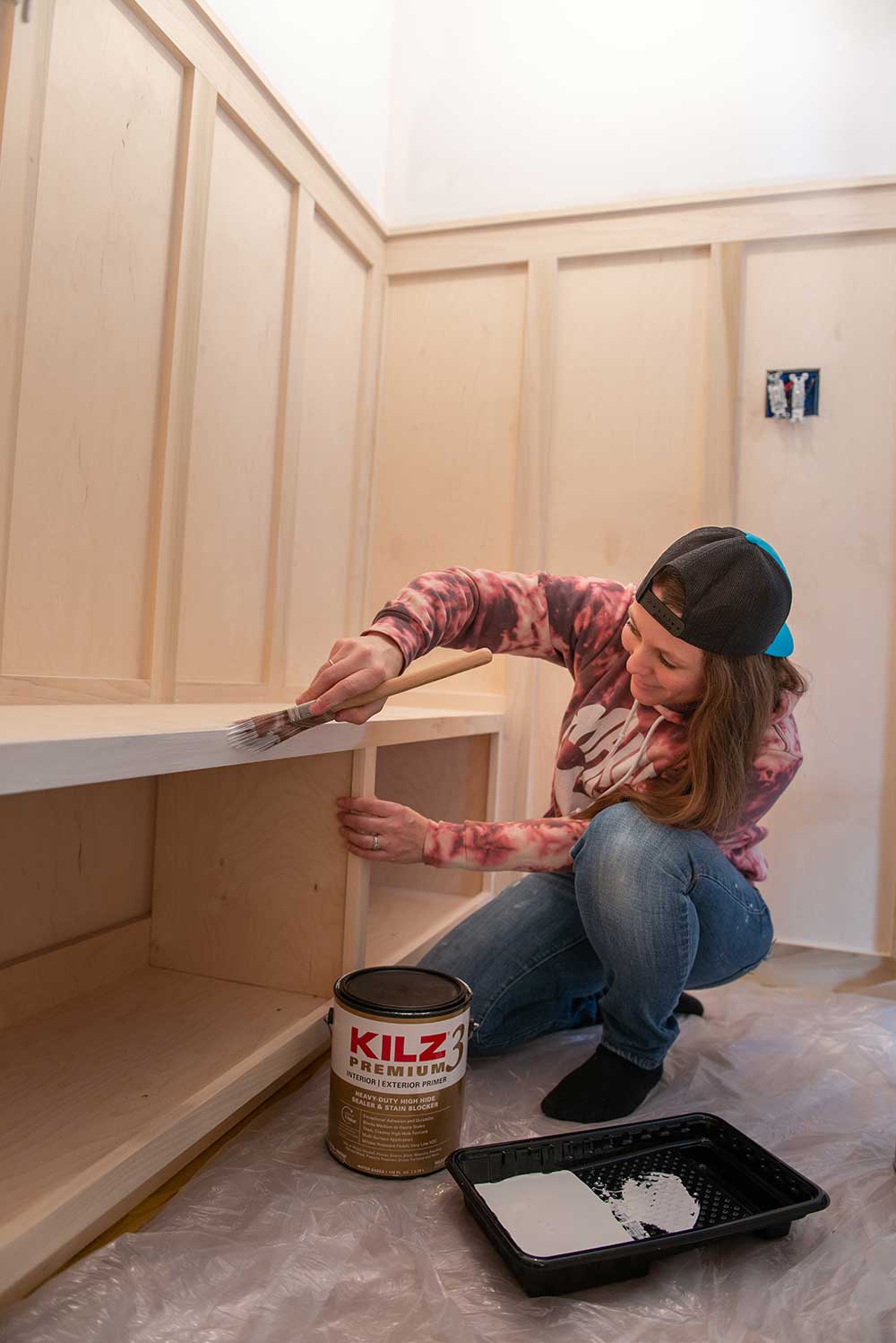 Hey there! I’m Christy, owner of Oak Hill Millworks, a creative venture based in the greater Pittsburgh area that aims to educate, entertain, & empower. Most of the topics I focus on have to do with woodworking & DIY, which is why we’re here! I want to share with you how I used tried & true KILZ primer to help drive my recent mudroom remodel home. KILZ is a brand that I have used since I can remember. My grandfather was a cabinet maker and he himself endorsed KILZ brand primer. It’s just one of those brands you can rely on, you know what I mean? And honestly… with how problematic life has been over the past year with so many unknowns, using KILZ is a simple solution in my mind.