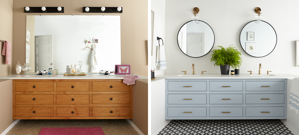 Refinishing a bathroom vanity requires a few basic steps to get the smoothest finish and results that will last in a humid environment. Here’s an easy guide to follow for your next project:
