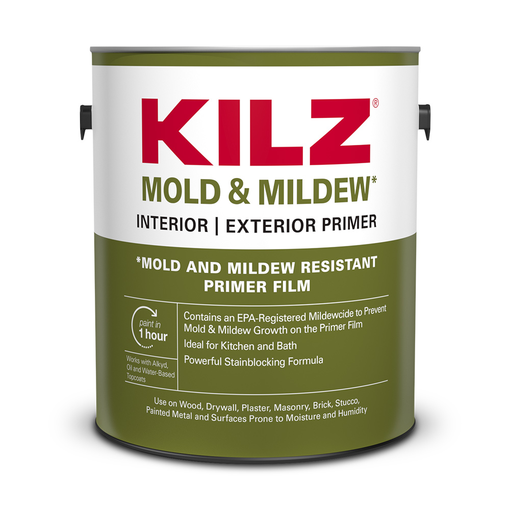 A water-based primer-sealer-stain blocker specially designed for residential surfaces in high humidity, moisture and temperature environments, KILZ® Mold & Mildew primer contains an EPA-Registered active ingredient that creates a mold and mildew-resistant film that protects the primer film from mold and mildew growth.