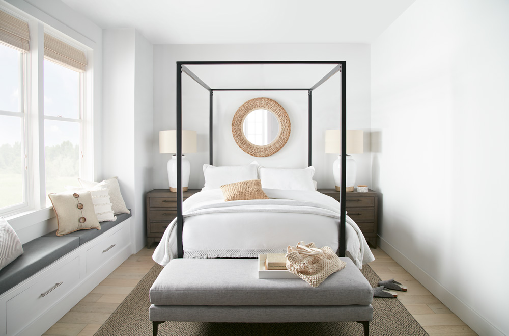 Our clients were looking for a light, bright aesthetic infused with a serene spa-like vibe for this makeover. The chosen white paint hues, coupled with creamy and natural elements, were the perfect combination to achieve this serene ambiance.