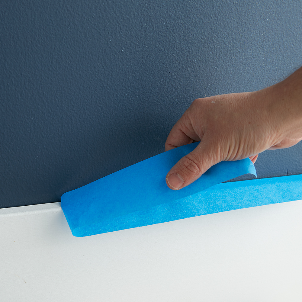 Step 2: Once dry, tape around the baseboards, trim and moldings.