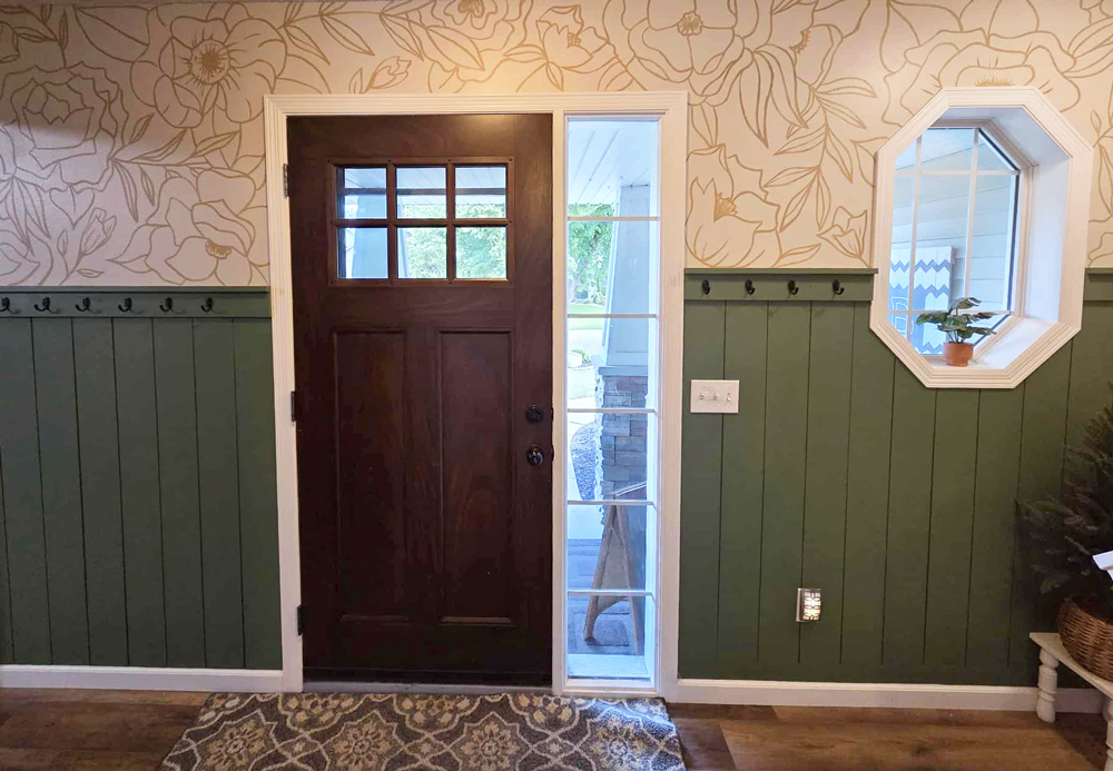 Because the primer had done its job so well, the finish coats glided on, looked rich, and masked any previous defects. The contrast between the crisp lines of the board & batten and the softness of the floral design gave the space a welcoming yet elevated feel.