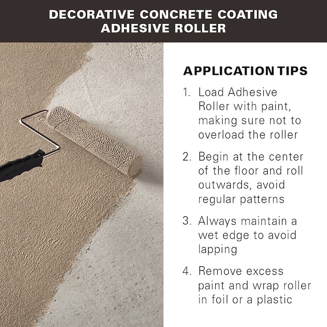 Where To BuyPair this 9", 1/4" nap KILZ Decorative Concrete Coating Adhesive Roller Cover with our KILZ Decorative Concrete Coating to bring new life to your garage floors, driveways, porches and patios. This product is only intended to be used with decorative coatings, adhesives, and epoxies such as KILZ Decorative Concrete Coating.