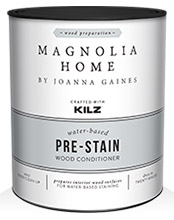 Magnolia Home by Joanna Gaines® Pre-Stain Conditioner, along with sanding, is essential in helping prepare interior bare or freshly stripped wood surfaces for an even and consistent color while staining. Use this product with Magnolia Home by Joanna Gaines Water-Based Interior Wood Stain to enhance the natural beauty of your interior wood surfaces.