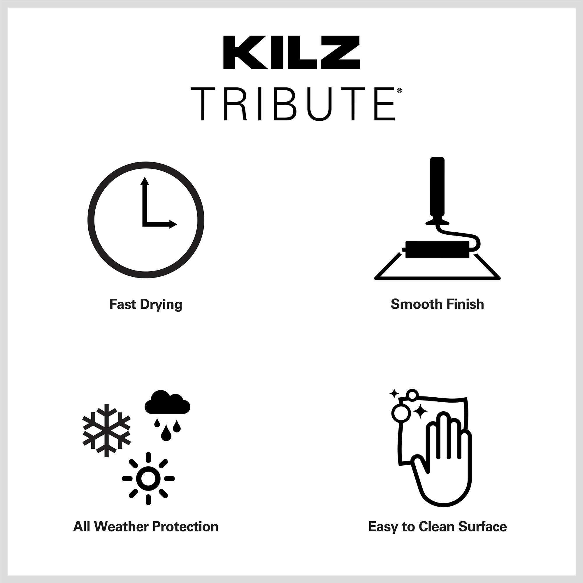 Where To BuyKILZ TRIBUTE® Trim, Door & Cabinetry Interior/Exterior Semi-Gloss Paint has excellent flow & leveling and dries to a hard, durable finish. It features a unique formula developed to offer the best characteristics of interior and exterior paint in one convenient product. With outstanding block resistance, it’s ideal for cabinets, doors, trim, windows, shutters, and woodwork. This allows quicker return to service as the painted surfaces won’t stick to each other after they dry. This paint can also be used on properly prepared and primed surfaces like drywall, masonry, and metal.