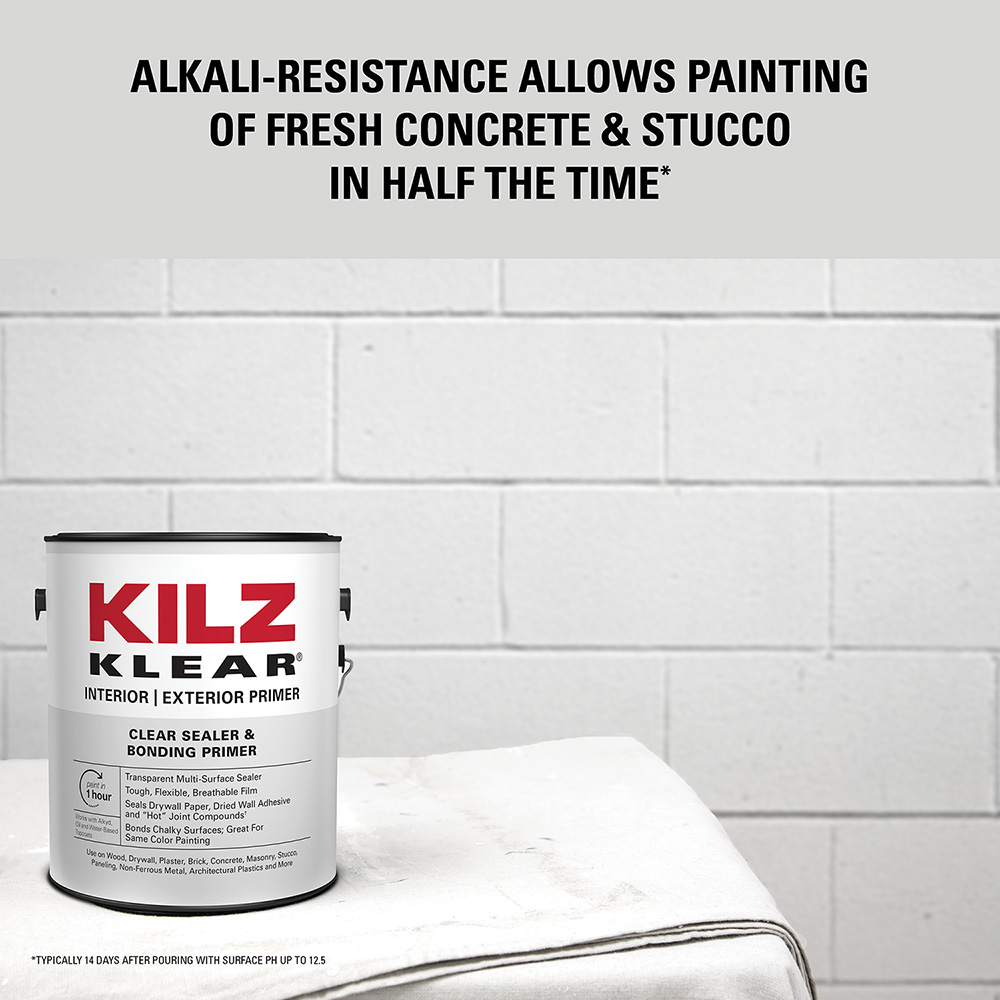 KILZ® KLEAR High Performance Sealer is a water-based fast dry multi-surface clear primer developed to seal porous surfaces inside and outside your home. Particularly effective for “same color painting”, KILZ KLEAR Primer will bond and seal porous and chalky surfaces with little change to current color. KILZ KLEAR Primer is a tough, flexible and breathable film to offer years of service. KILZ KLEAR Primer may also be used to seal highly porous surfaces with a transparent flat finish.