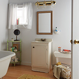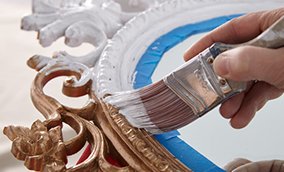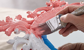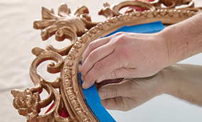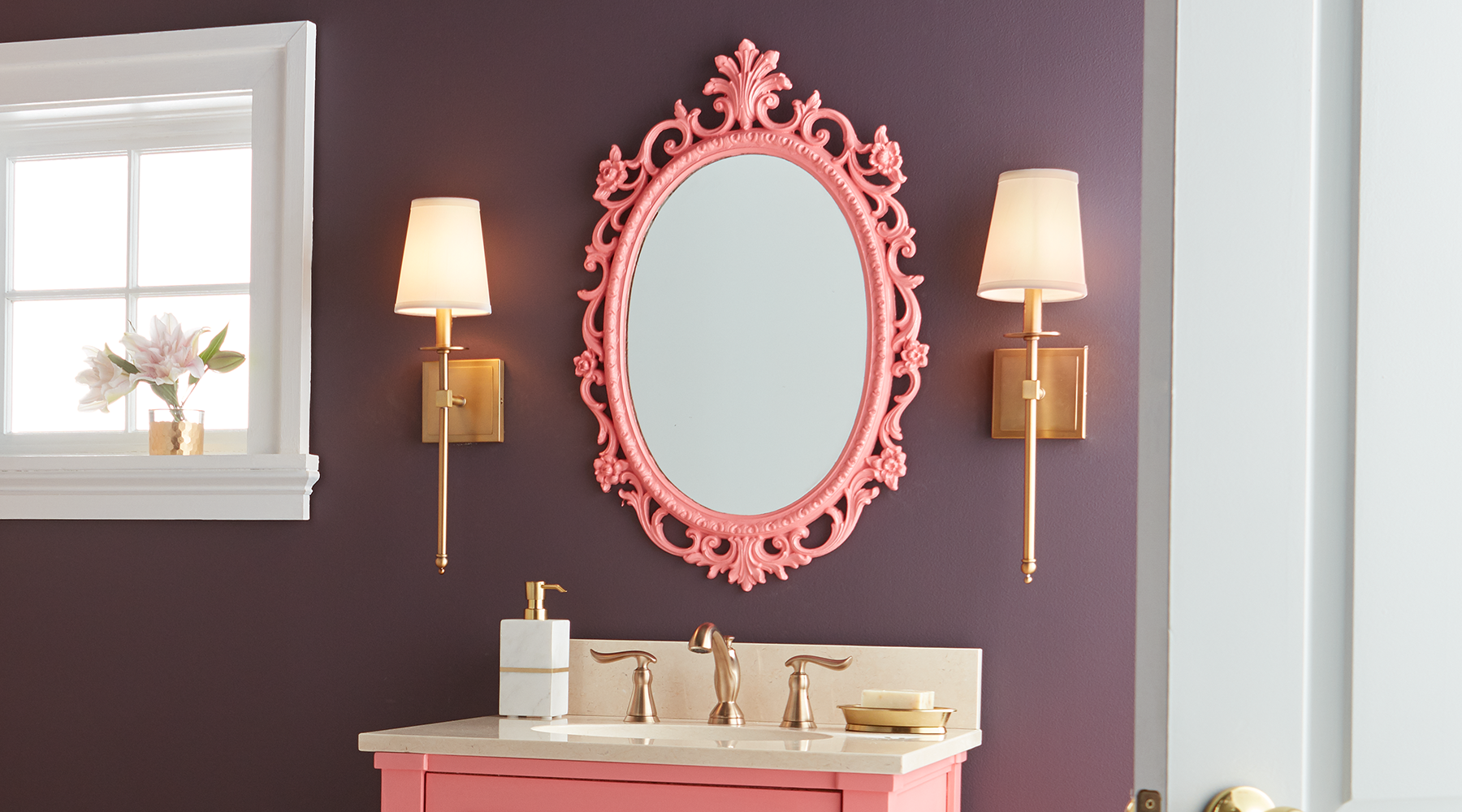 Next, apply KILZ Complete Coat in Ruffle Pink Dress LA180-01 (a satin or semi-gloss finish is recommended to ensure superior mildew resistance) using a nylon or polyester brush. Remove the painter’s tape before paint is fully dry and your mirror is ready to shine!