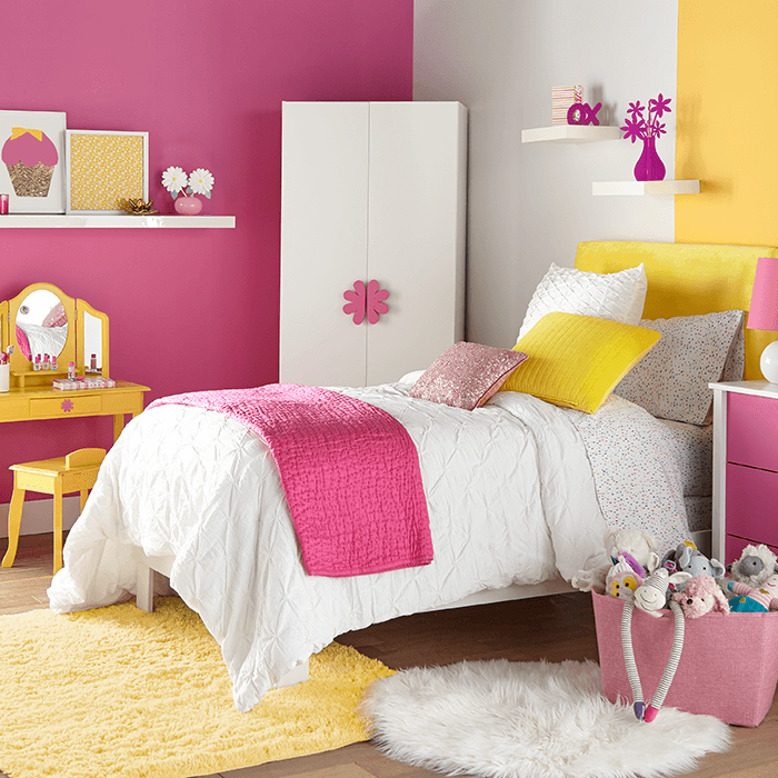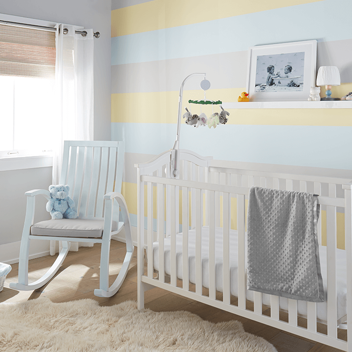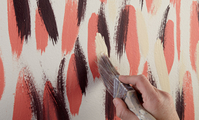 Starting with KILZ Complete Coat in Ruffle Pink Dress LA180-01, use a brush and apply vertical strokes across the entire wall. Once dry, use KILZ Complete Coat in Mulberry RA100-02 and repeat, slightly overlaying the vertical strokes across the first pink strokes. Allow to dry and repeat with KILZ Complete Coat in Ginger Root LD210-02 and your statement-making paint project is complete!
