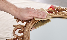 Sand the mirror frame, first with 100-150 grit sandpaper and then finish with a second pass of 180-220 grit sandpaper.