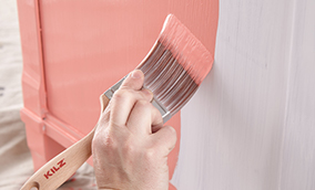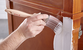 Apply KILZ Kitchen & Bath primer, moving in the same direction as the wood grain for best results. Allow primer to dry for 1 hour.