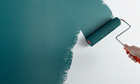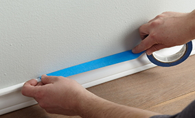 Next, tape around the baseboards, trim and moldings. To seal and block stains and odors, apply KILZ® Original Primer to the walls. Stirring prior to and during use, apply primer using a brush first to “cut in” around the edges, then use a roller to fill in and allow 1 hour of dry time. Once the primer is dry, apply KILZ® Tribute® in Oceans Deep using the same application method as the primer – using a brush first to cut in around the edges 4 to 6 feet at a time, then use a roller to fill in those sections before moving along. Remove tape prior to paint fully drying and admire the stain-free walls.
