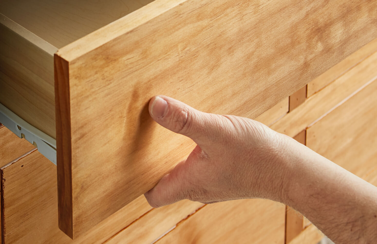 Once everything is dry, reattached your hardware and put the drawers back into place.