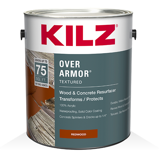 Where To BuyKILZ OVER ARMOR® Textured Coating is a lightly-textured, solid color coating designed to bridge cracks, hide imperfections and give a uniform look to old, weathered wood.