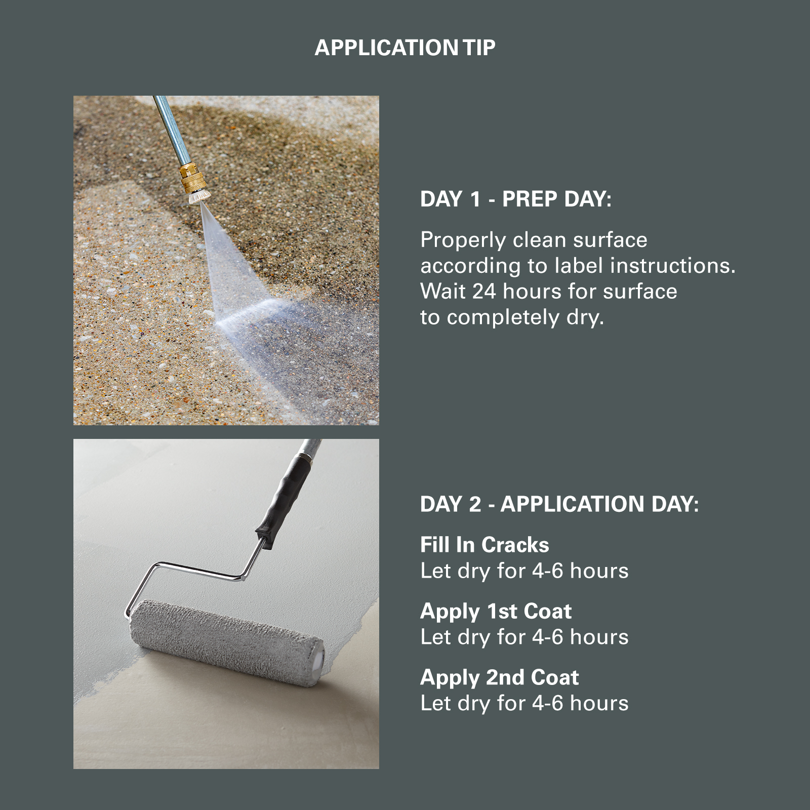 The following steps and products are required: All surfaces must be clean, sound, dry and free of any dirt, oil, and grease before application.